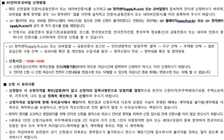 | 인 터 넷 | LH 청약센터: http://apply.lh.or.kr |