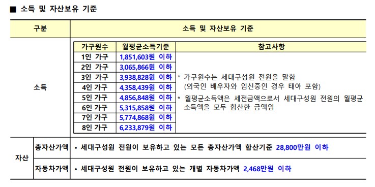 소득,자산(부동산,자동차,금융자산,기타자산,부채) 산정방법은 공고문을 확인하시기 바랍니다.