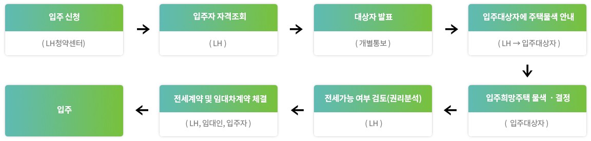 ㅇ 전세임대 입주대상자 선정 시 해당 세대의 소득 등은 보건복지부의 ‘사회보장정보시스템’을 이용하여 파악하므로, 입주대상자가 직접 서류를 준비할 필요가 없어 신청이 간편합니다.