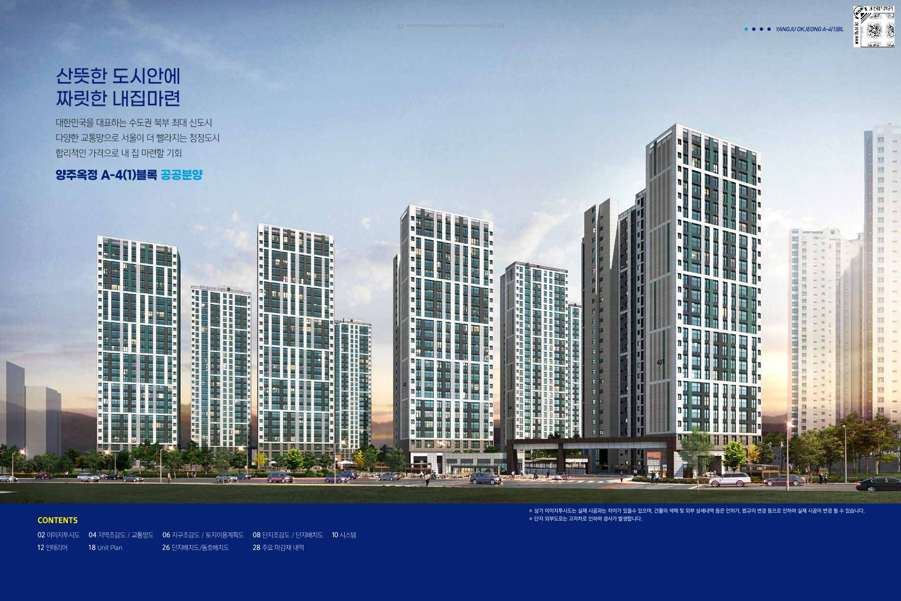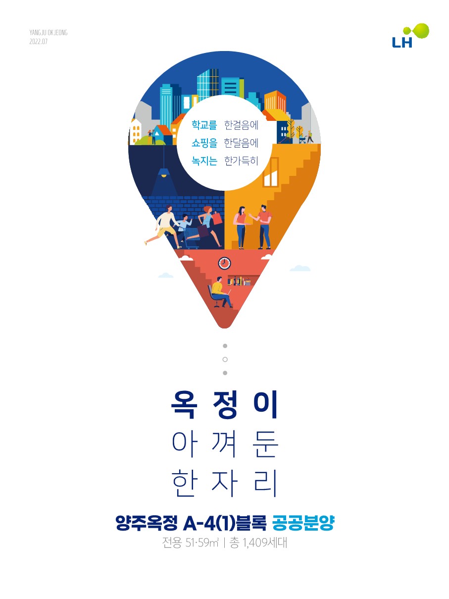 | ❚공급위치 : 경기도 양주시 삼숭동, 고암동, 회암동, 율정동, 옥정동 일원 양주옥정 택지개발지구내 A-4(1)블록 ❚공급대상 : 공공분양주택 1,409세대 (전용면적 51㎡ 509세대, 59㎡ 900세대) |