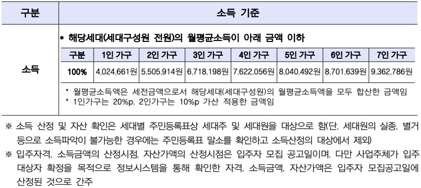입주자모집공고일(2023.10.27) 현재 무주택세대구성원으로서 아래의 세부자격요건 및 소득기준을 충족하는 자