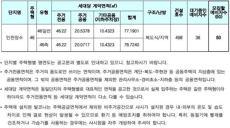 공급형 46형 총 2개유형으로 공급되며 금회 모집할 예비자수는 총 50명입니다.