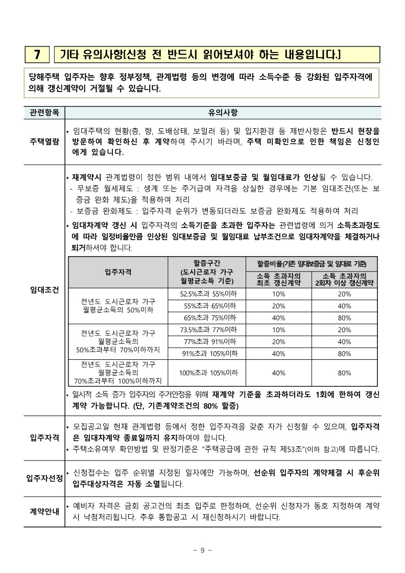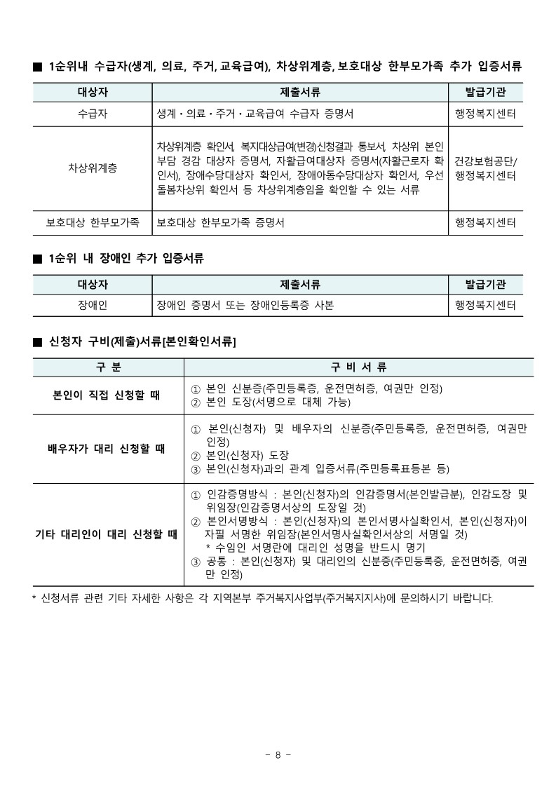 - 주택 개보수 완료여부 등에 따라 변동될 수 있으며, 세부사항은 담당지사로 문의하시기 바랍니다.