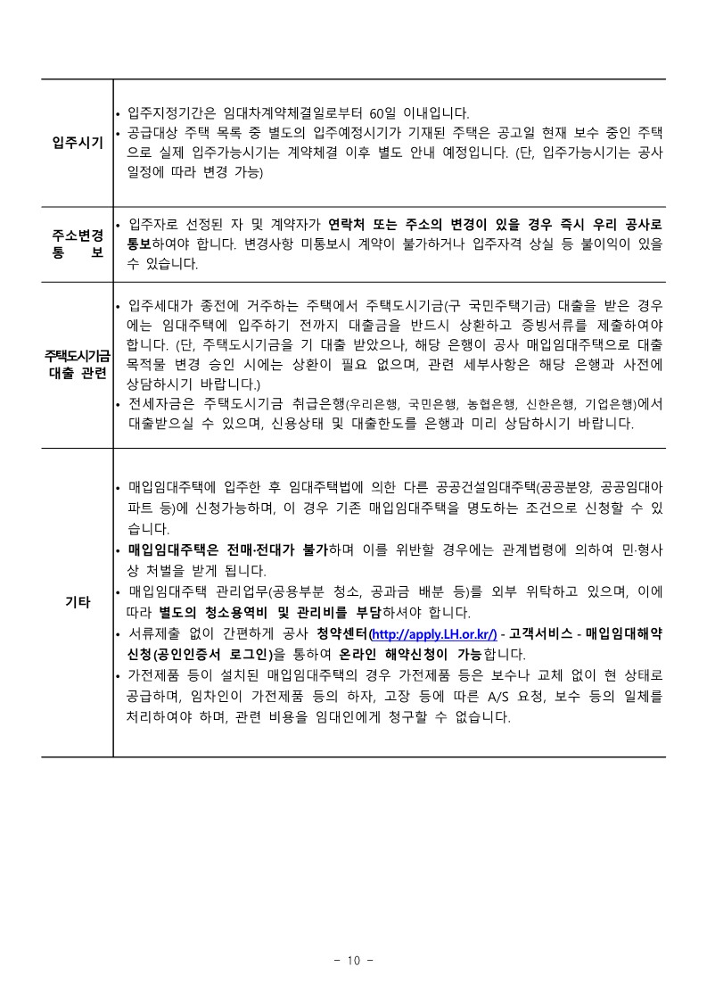 | 임대조건 | ∙ 공급대상 주택별 임대조건 : 첨부 “공급가능주택 목록” 참조 |