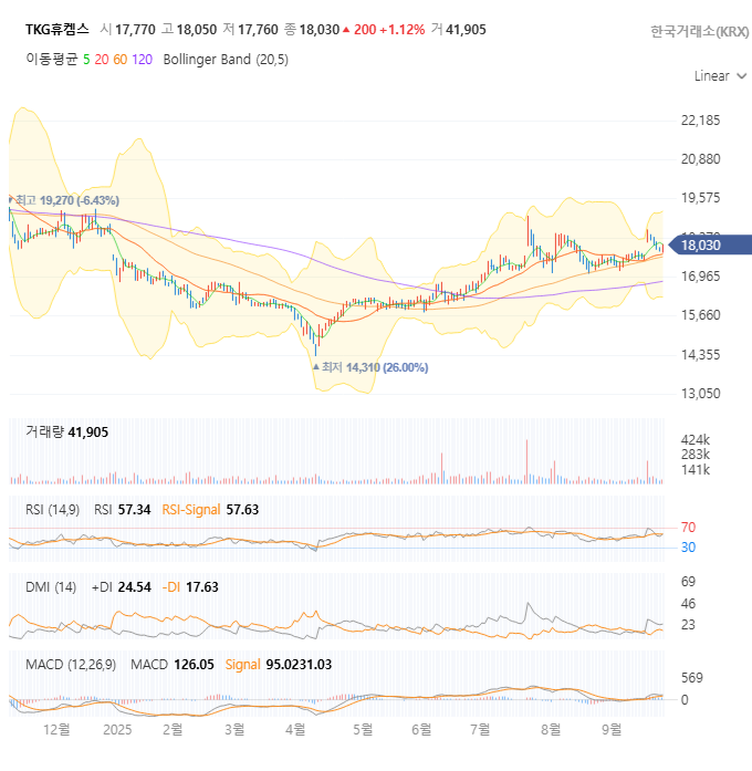 | 현재 주가 (25/09/23) | 18,030원 | 상승 추세 전환 시도 중 |