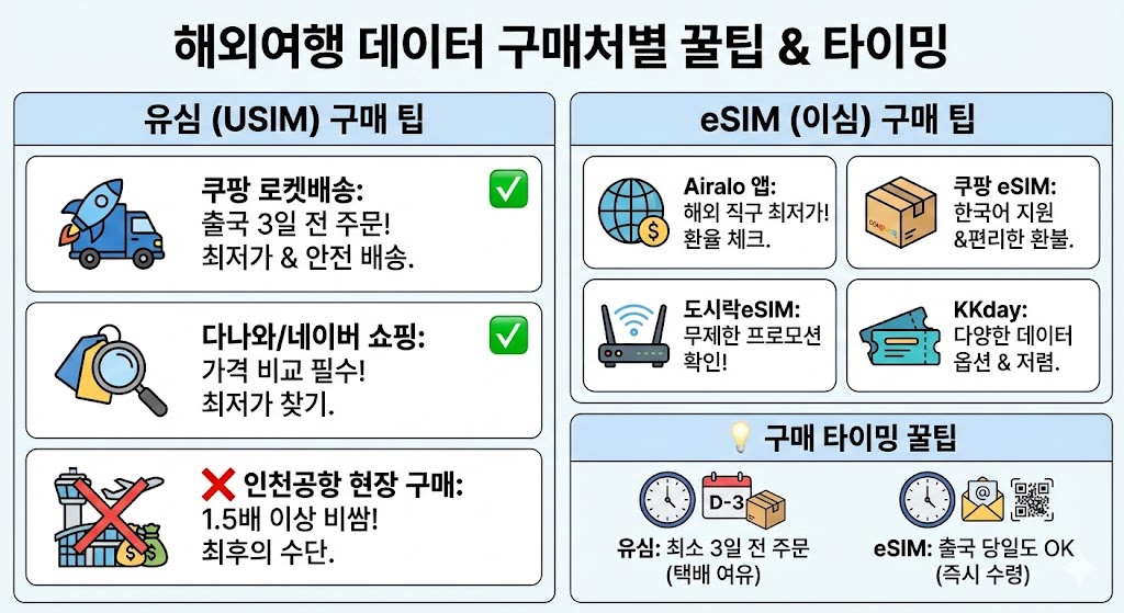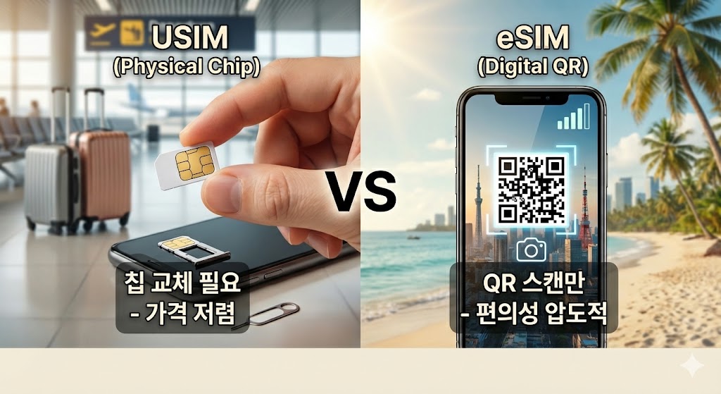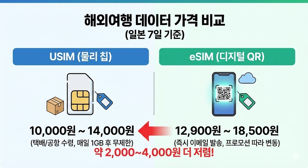 # 해외여행 유심 vs eSIM 가격 비교 - 2025년 12월 최신