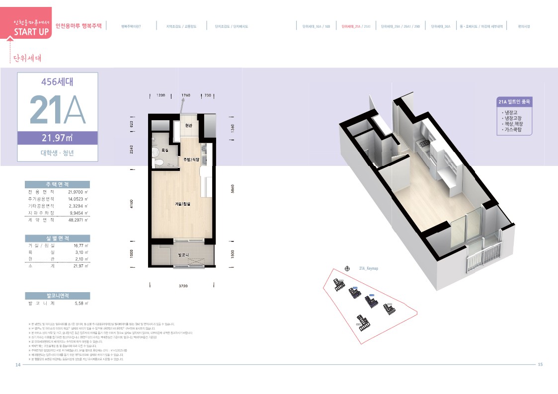 • 인천용마루 행복주택의 공급대상 16A형 및 21A형의 “대학생계층(취업준비생 포함), 청년 계층(취업준비생 포함)”의 주택에는 가전제품(냉장고, 냉장고장, 가스쿡탑, 책상/책장)이 설치되며, 16B형 “고령자” 주택에는 가스쿡탑, 21A1형의 “고령자” 주택에는 가스쿡탑 및 붙박이장이 설치됩니다.