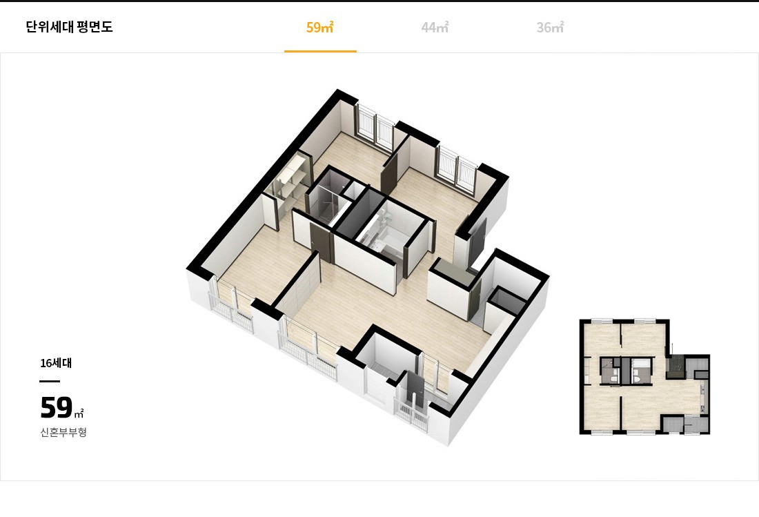 • 전용면적은 해당주택의 순수한 주거용도의 바닥 면적이고, 주거공용면적은 다른 세대와 공동으로 사용하는