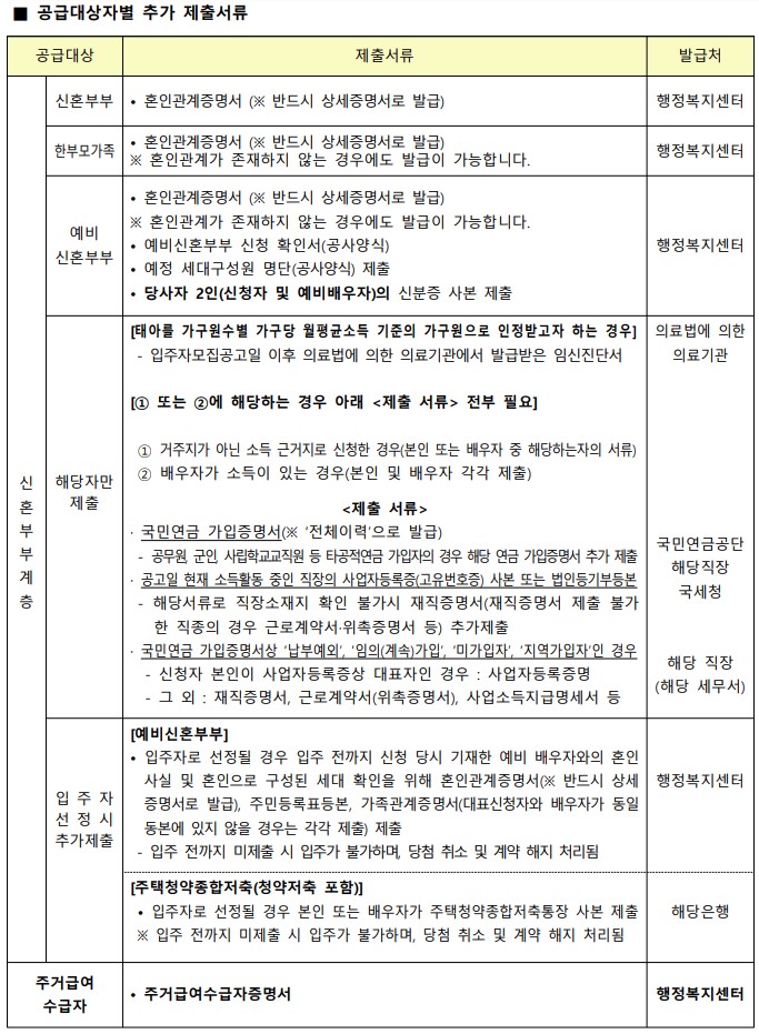 | 공급유형 | 공급대상 | 호수 | 최대 거주 기간 (년) |