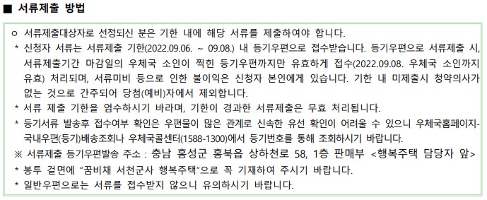 2022.09.06(화) ~ 2022.09.08(목) (등기우편) 발송주소 아래 서류제출방법참고 |