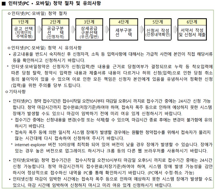| 인터넷 청약 | ‧ PC 및 모바일 : 주택청약센터(https://apply.cndc.kr/) 인터넷청약 → 청약신청(임대주택) |