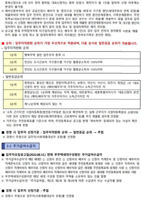| ▶인터넷청약 2022.08.22(월) 10:00 ~ 2022.08.25(목) 17:00 *접수 첫날과 마지막날을 제외한 기간 내 24시간 신청 가능 |