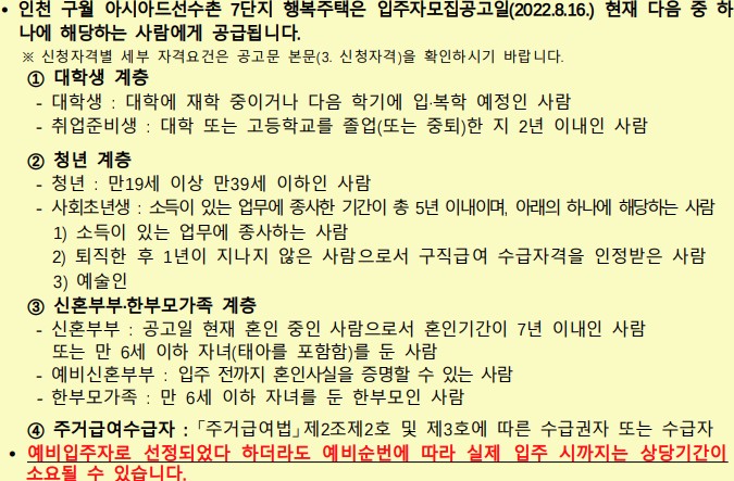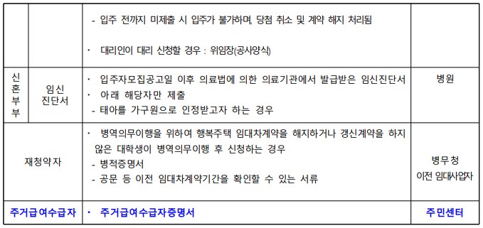 | 대학생 청년 신혼부부 한부모가족 주거급여수급자 기존거주자 |