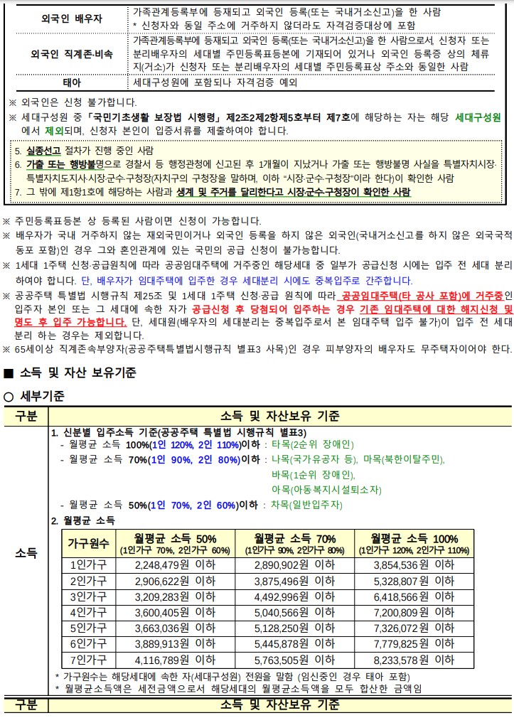 ※ 공공주택 특별법 시행규칙 부칙 제269호 제2조 제2호에 따라 일반공급의 경우 동법 시행규칙 별표3 1호의 나목(국가유공자 등)은 모집하지 않습니다.