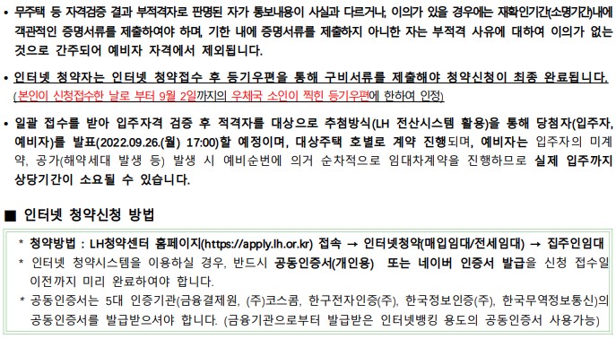 ※ 신청접수는 인터넷(https://apply.lh.or.kr)으로만 받습니다.