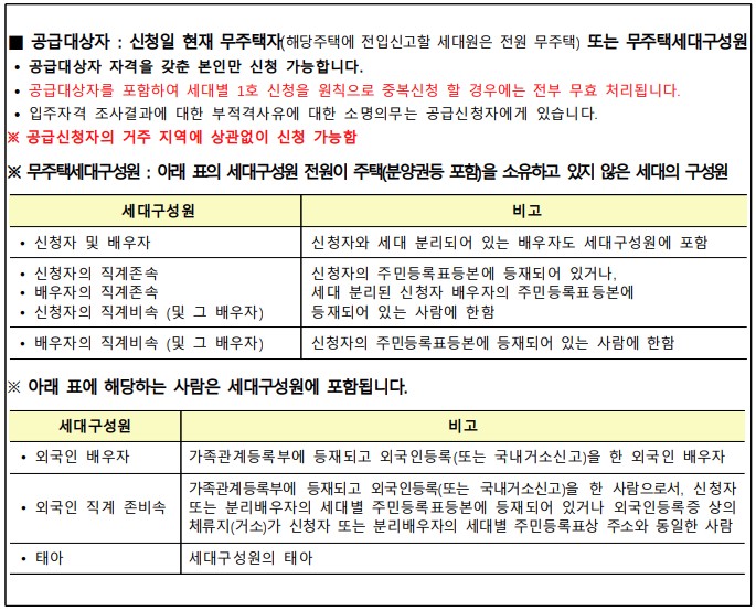 | 대상주택 | 계 | 입주자 | 예비입주자 |