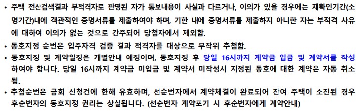 당첨 후 주택소유 등으로 자격요건 상실시 당첨이 취소되거나 계약이 거절될 수 있습니다.)
