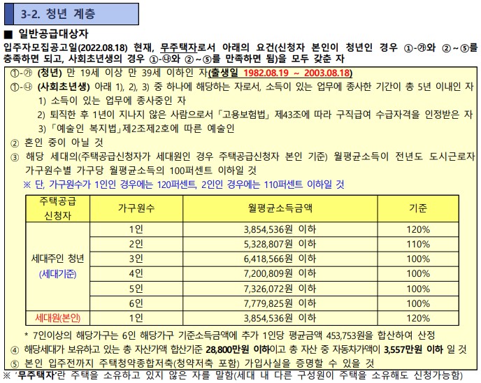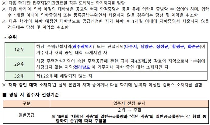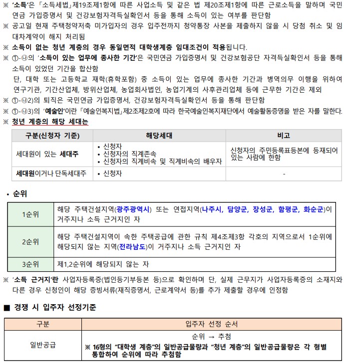※ “대학생 계층” 및 “청년 계층”은 모집공고일부터 입주시까지 무주택자이어야 합니다.