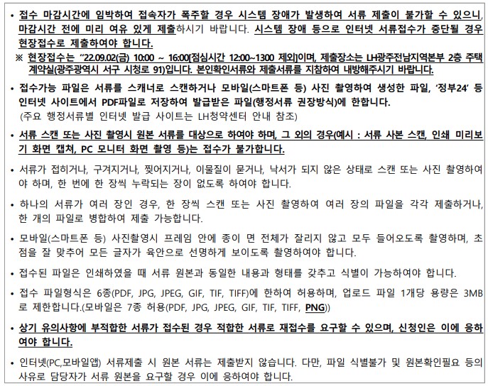 ▶온라인 서류접수 ‘22.09.02(금) ~ 09.06(화) 10:00~16:00 ▶현장 접수 ‘22.09.02(금) (10:00~16:00) *점심시간(12:00~13:00) 제외 |