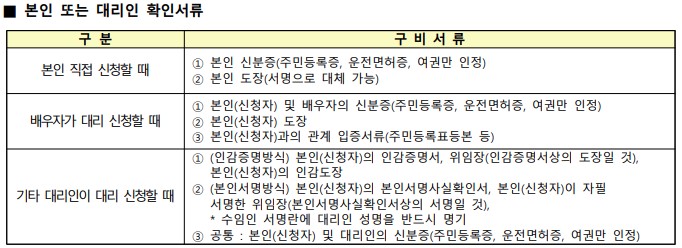 ※ 주민등록표등본, 주민등록표초본, 가족관계증명서 등 발급시 주민등록번호 13자리 숫자 모두 기재되도록 발급받아 제출