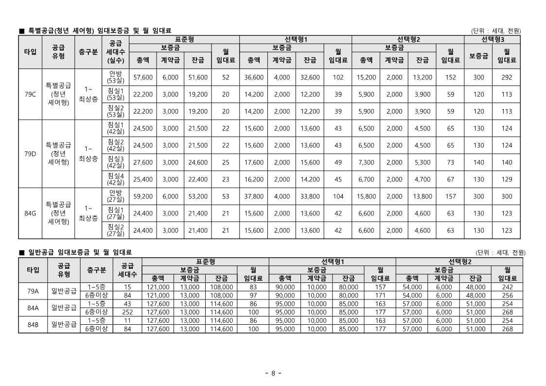 모집호수 | 임대보증금(원) |