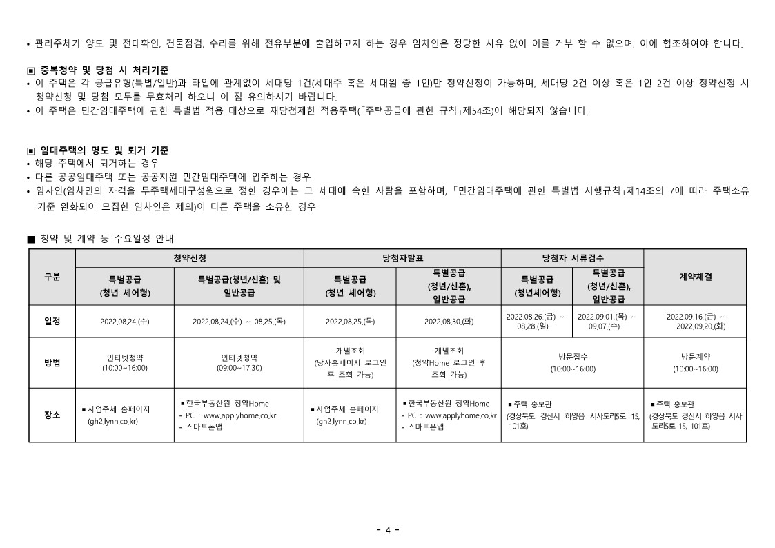 ※ 위 당첨자 발표 일자는 '특별공급(청년셰어형)' 기준입니다. 자세한 사항은 모집 공고문 확인 바랍니다. |