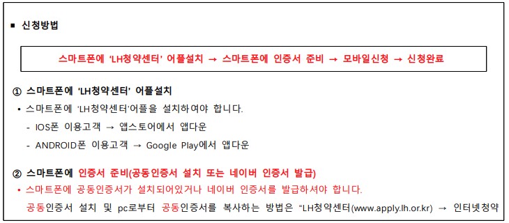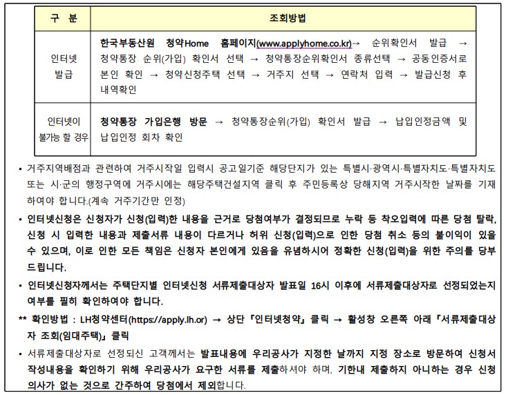| 인 터 넷 | www.lh.or.kr : 한국토지주택공사 홈페이지→청약센터 |
