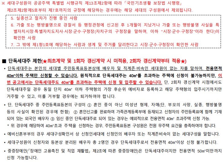 (소득기준완화: 기준소득150%이하 및 금회 모집 주택형 46㎡ : 단독세대주 신청 가능)