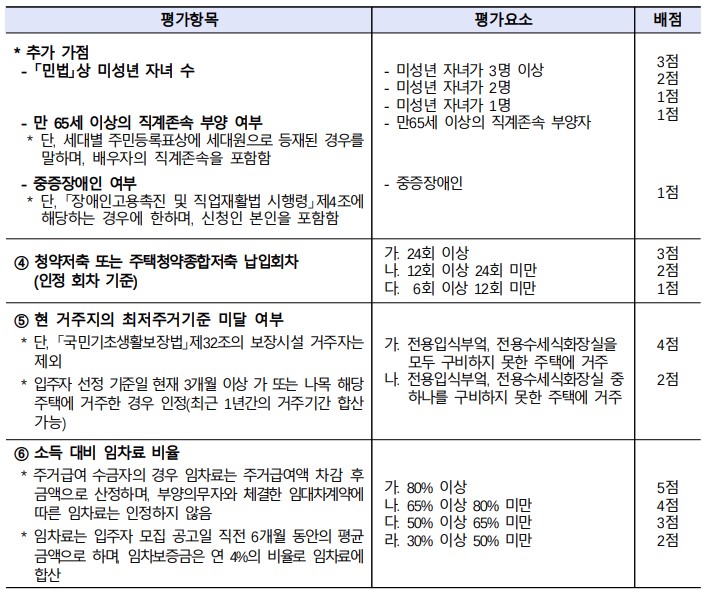 | 임대기간 | • 2년, 재계약 9회 가능(입주자격 유지시 최장 20년까지 거주 가능) * 만 65세 이상 고령자의 경우 재계약 횟수 제한 없음 |