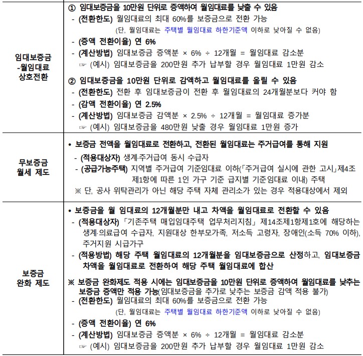 | 임대조건 | • 시중 전세가의 30% 수준 • 주택별 임대조건은 입주자 선정 후 계약 안내 시 개별 안내 |