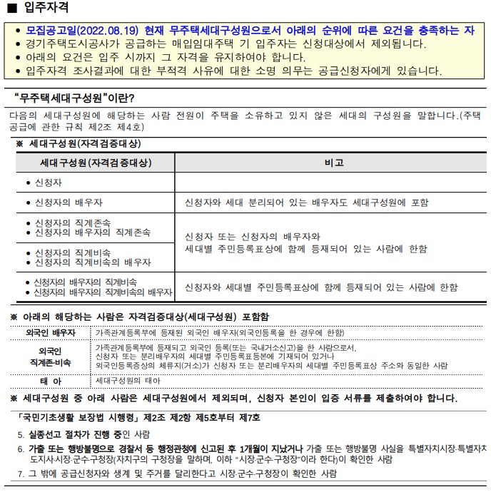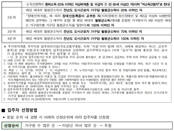 * 경기주택도시공사(구 경기도시공사) 매입임대주택 현재 거주 중인 자는 신청 불가
