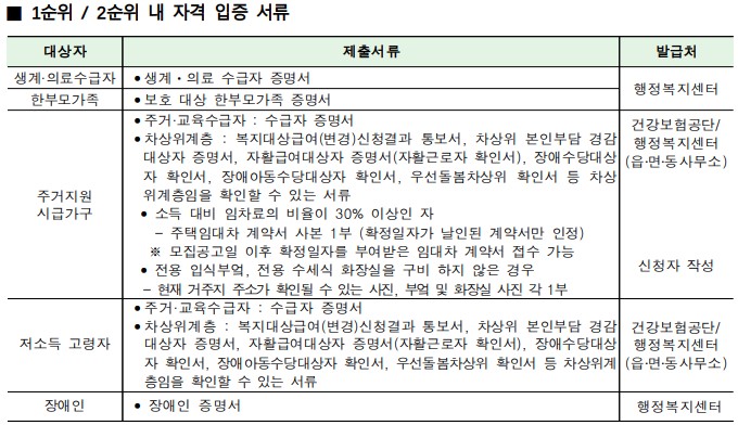 • 해당 세대의 주택 소유 여부 및 소득 자료는 사회보장정보시스템의 조사결과에 의함