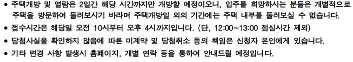 * 공급주택을 해당 일자에 개방할 예정이오니, 희망하시는 분들은 개별적으로 주택을 방문하여 주시기