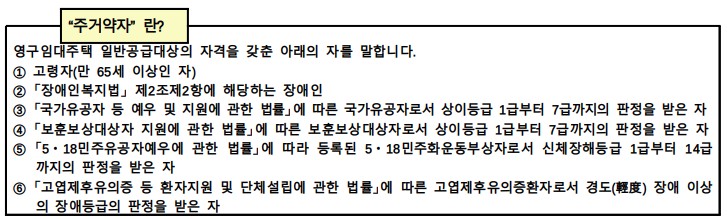 • 공고된 임대조건은 모집공고일 현재 기준이며, 예비입주자로 선정된 고객께서 임대차계약을 체결하는 시점에 당해 주택의 임대조건이 변경된 때에는 변경된 임대조건으로 계약하셔야 합니다.
