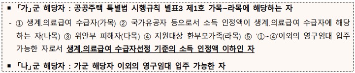 | 공급형별 | 가군(생계·의료급여수급자 등) | 나군(일반 등) | ||||||