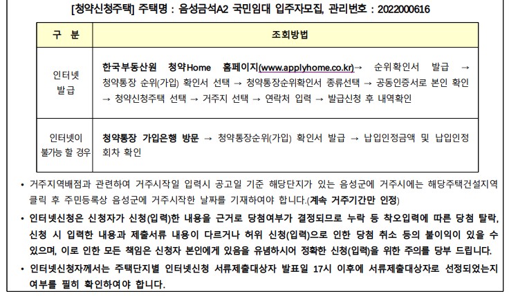 | 인 터 넷 | LH 청약센터(https://apply.lh.or.kr) |