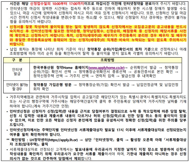 | 인터넷 (신청, 발표 등) | LH 청약센터(https://apply.lh.or.kr) |