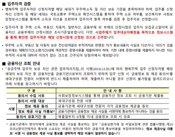 > | 무주택‧소득‧자산 소명요청 (개별통보) |