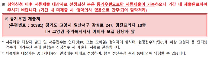 > | 인터넷청약 서류제출 대상자 서류접수 (10.4~10.7) |