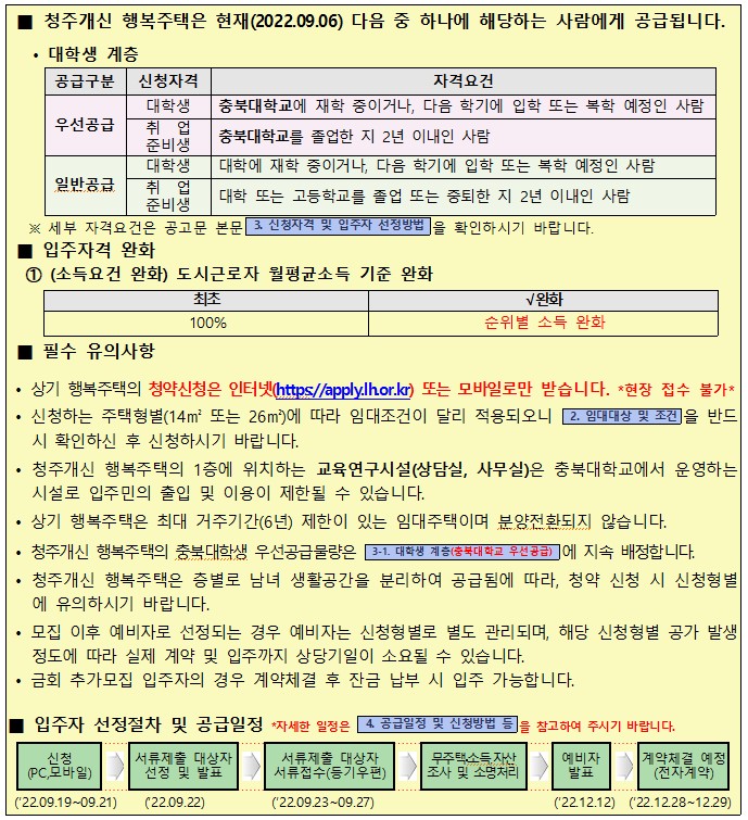 청주개신 행복주택 예비입주자 모집 [입주자격 완화] ✔ 충북대학교 개신캠퍼스 내 ✔ LH 장기임대아파트 국민임대 대학생 취업준비생 우선공급