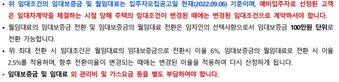 | 주택형별 | 임대조건 | 전환가능 보증금 한도액 (천원) |